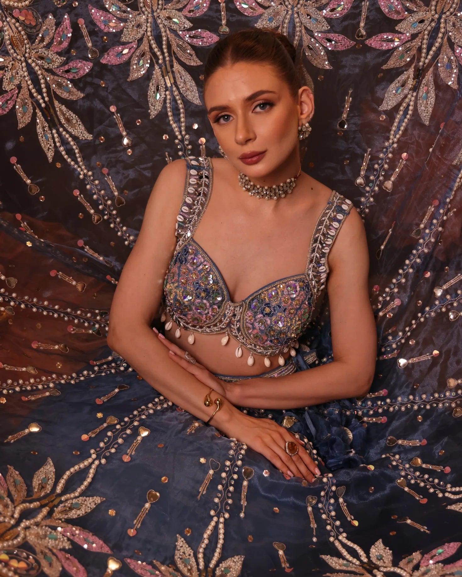 Absolutely stunning! The Elegant Sky Anarkali Gown exceeded my expectations. The Chinon fabric feels luxurious, and the pearl work adds a regal touch. Perfect fit and received so many compliments at the wedding. Highly recommend!