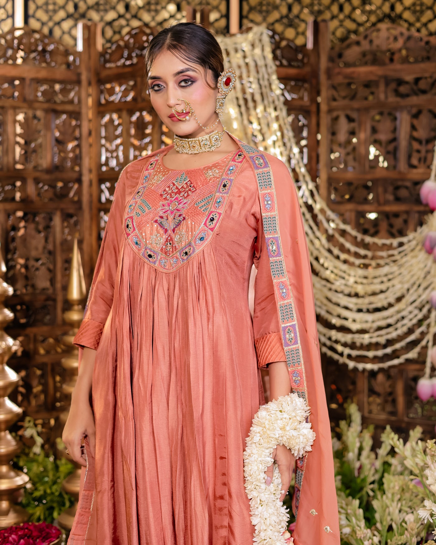 Soft, elegant, and graceful — Peach Aura kurti set offers pastel charm with beautiful embroidery, perfect for subtle festive looks.