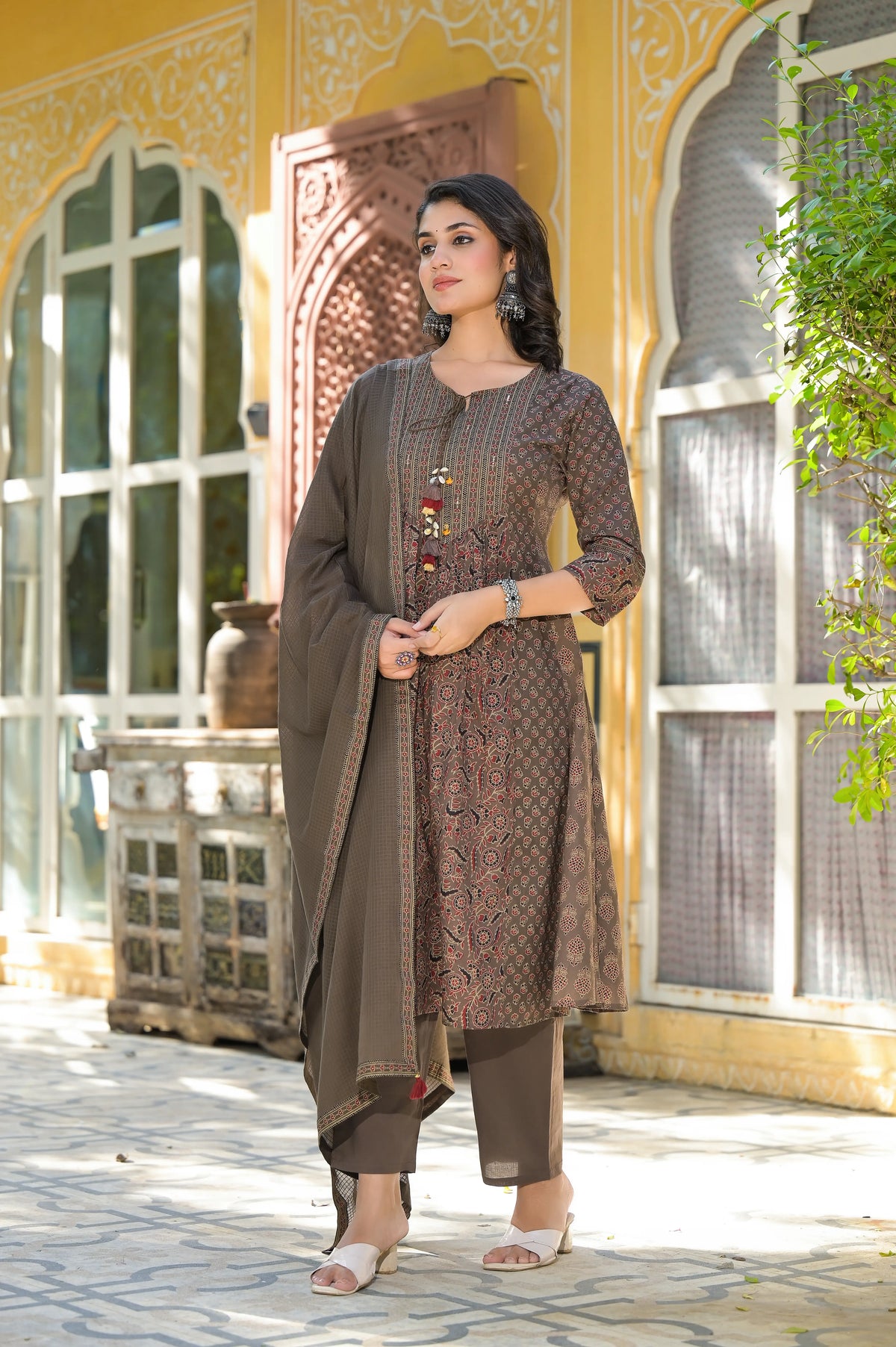 An Anarkali cotton kurta with a pant set is a beautiful and elegant ensemble.
