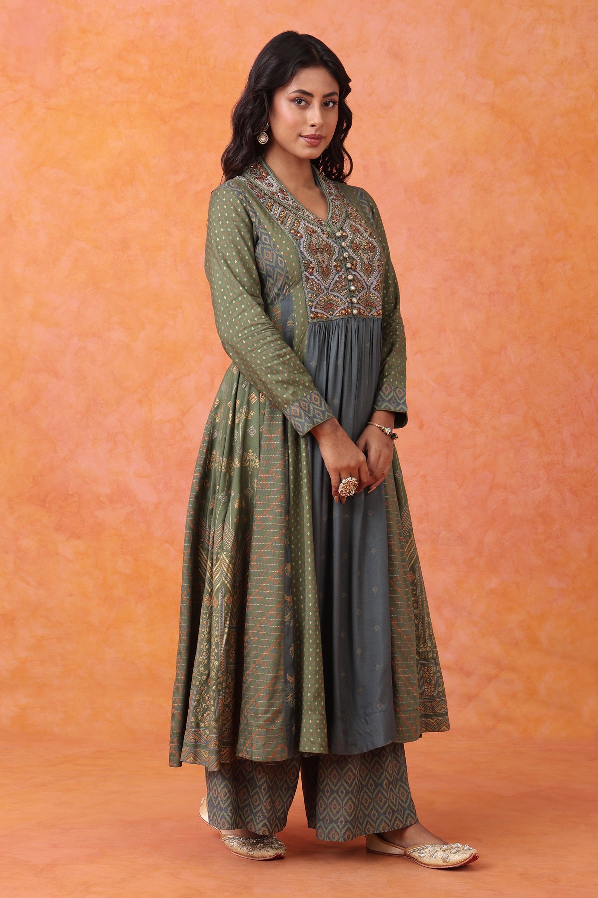 Enhance your ethnic wardrobe with this elegant Anarkali kurta palazzo and dupatta set, designed for modern women who love traditional style. Crafted from premium-quality fabric, the flared Anarkali kurta features intricate embroidery and fine detailing, paired with a comfortable palazzo pant and a matching dupatta for a complete festive look. Perfect as a wedding wear outfit, party wear dress, or festive ethnic set, this Indian traditional wear for women blends comfort with sophistication. Pair this Anarkali suit set with dupatta with statement jewelry and heels to make a lasting impression.