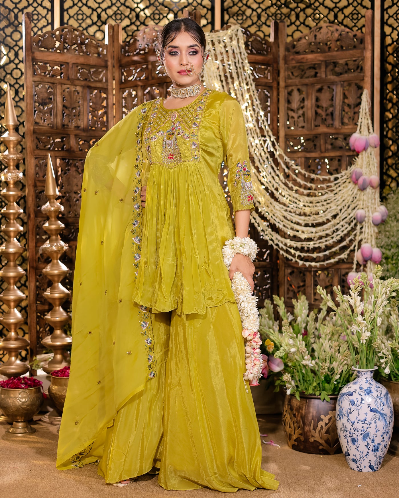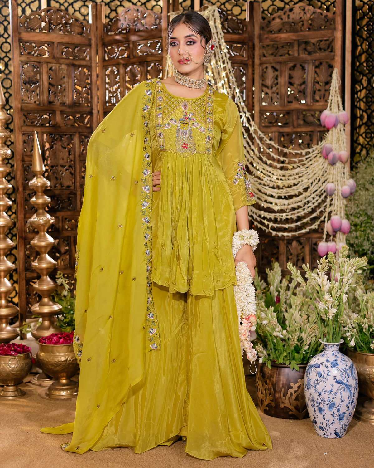Mustard Royale brings a vibrant festive vibe with traditional embroidery and flowy textures. A perfect blend of brightness and elegance.